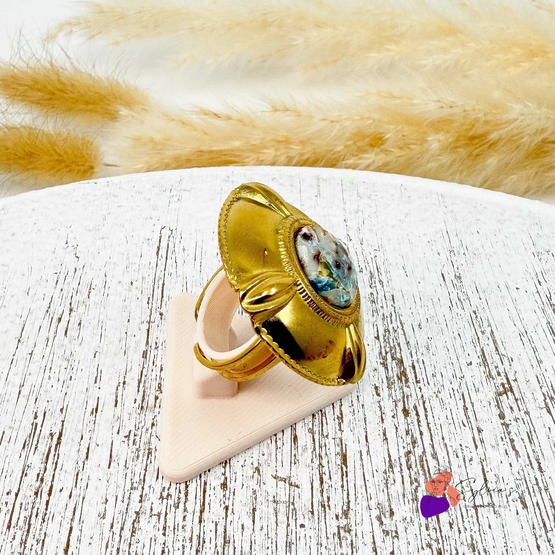 Découvrez cette bague dorée artisanale en argile polymère, une création unique qui allie élégance, créativité et savoir-faire français.