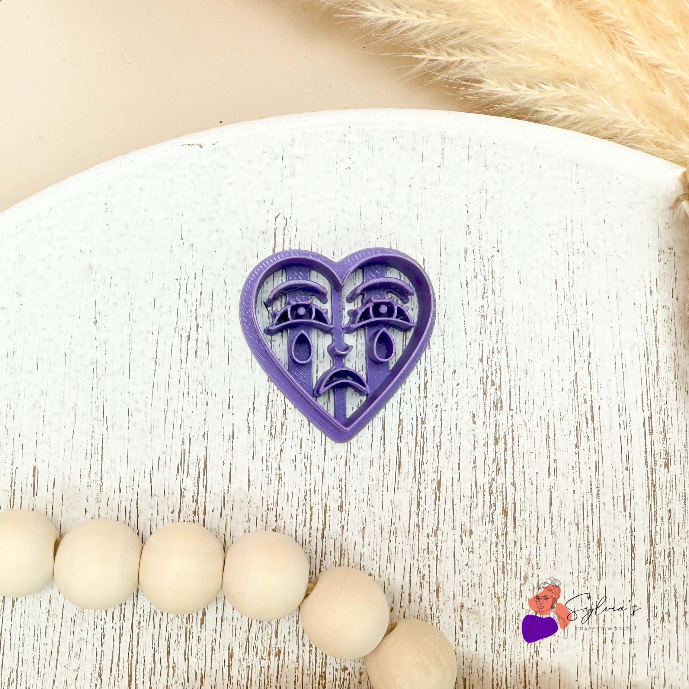 💜 Crying Heart Polymer Clay Cookie Cutter – Expressive Valentine's Day Heart