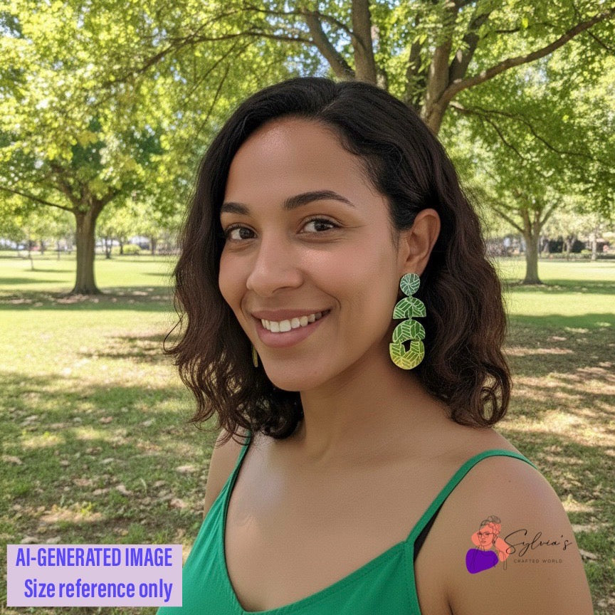 Apportez une touche d’élégance et de couleur à votre style avec ces boucles d’oreilles “Gaïa” au design géométrique vert et jaune.